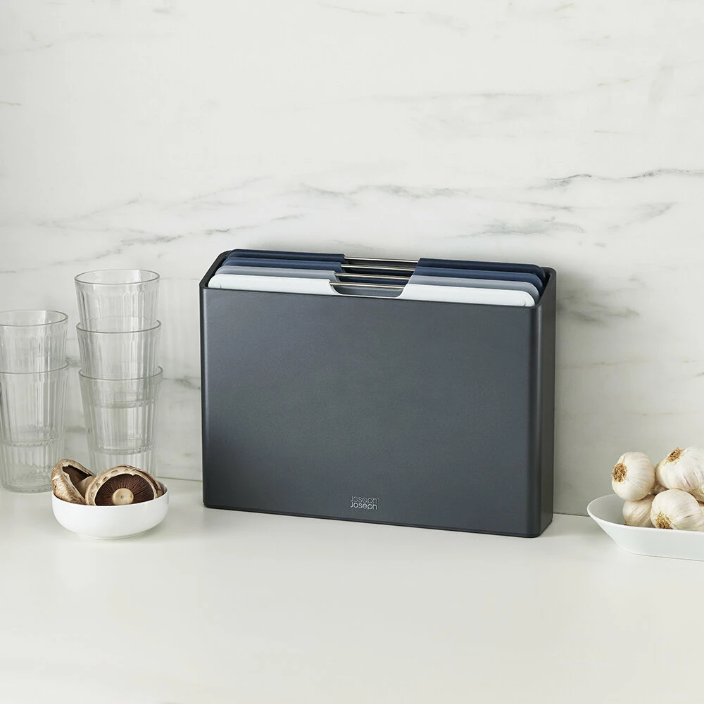 Set of 4 Chopping Boards held in stylish slimline case designed by Joseph Joseph.