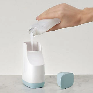 Dispensing soap from its non-drip spout, this super-smart, sleek Blue Slim Soap Pump takes up very little space beside the sink or basin and the pump head simply lifts out when it’s time for cleaning or refilling. The pump head and base are duck-egg blue to match the rest of the EasyStore Bathroom range and the base has an anti-slip ring to help it stay in place even on shiny bathroom tiles. Made by Joseph Joseph.