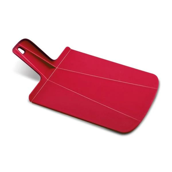 These clever folding chopping boards make it easy to transfer chopped food into a pot or pan without dropping any along the way. The original folding chopping board Innovative folding design for easy food transfer When the handle is squeezed, the sides of the board fold up forming a chute down which chopped food or waste can be neatly guided Textured, knife-friendly cutting surface Soft-grip handle and non-slip feet H1.5 x W38 x D21cm (H¾ x W15 x D8¼ inches)