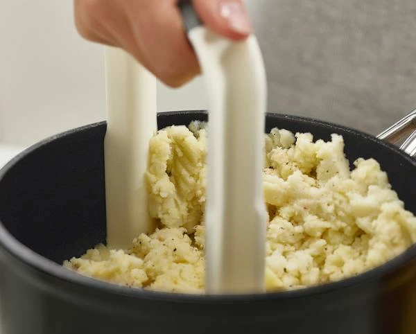 This ergonomic masher features a D-shaped design with a non-slip grip that’s more comfortable to hold. D-shaped design easier to hold and more efficient to use Non-slip grip Pan-scraping edges Curved mashing plate fits into pan edges Suitable for non-stick cookware Care & use: Dishwasher safe BPA free Dimensions: H16.5 x W12 x D7cm (H6½ x W4¾ x D2¾ inches)