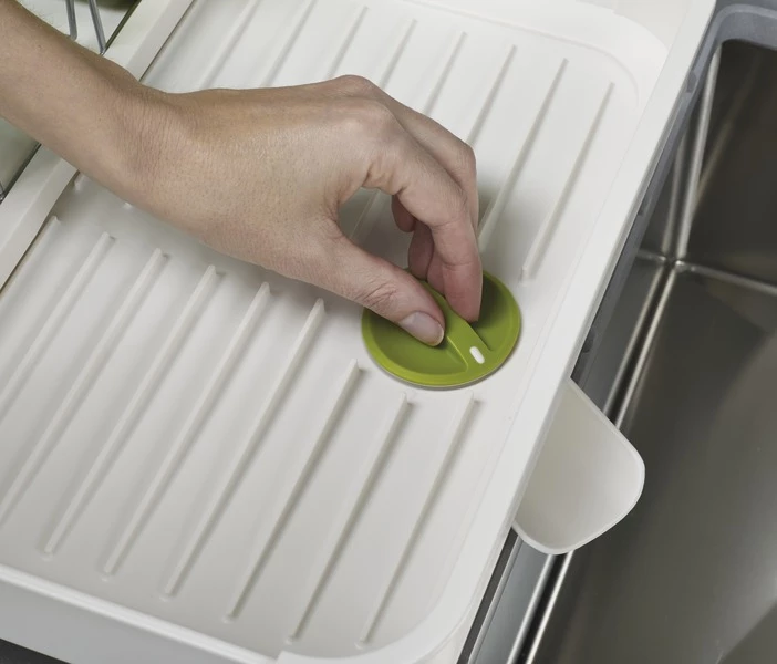 Extend ™ comes with a handy integrated spout to help drain away excess water, but this can be rotated away and closed trapping water inside for draining later. This means that Extend™ can also be used to create dish drying space almost anywhere.
