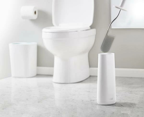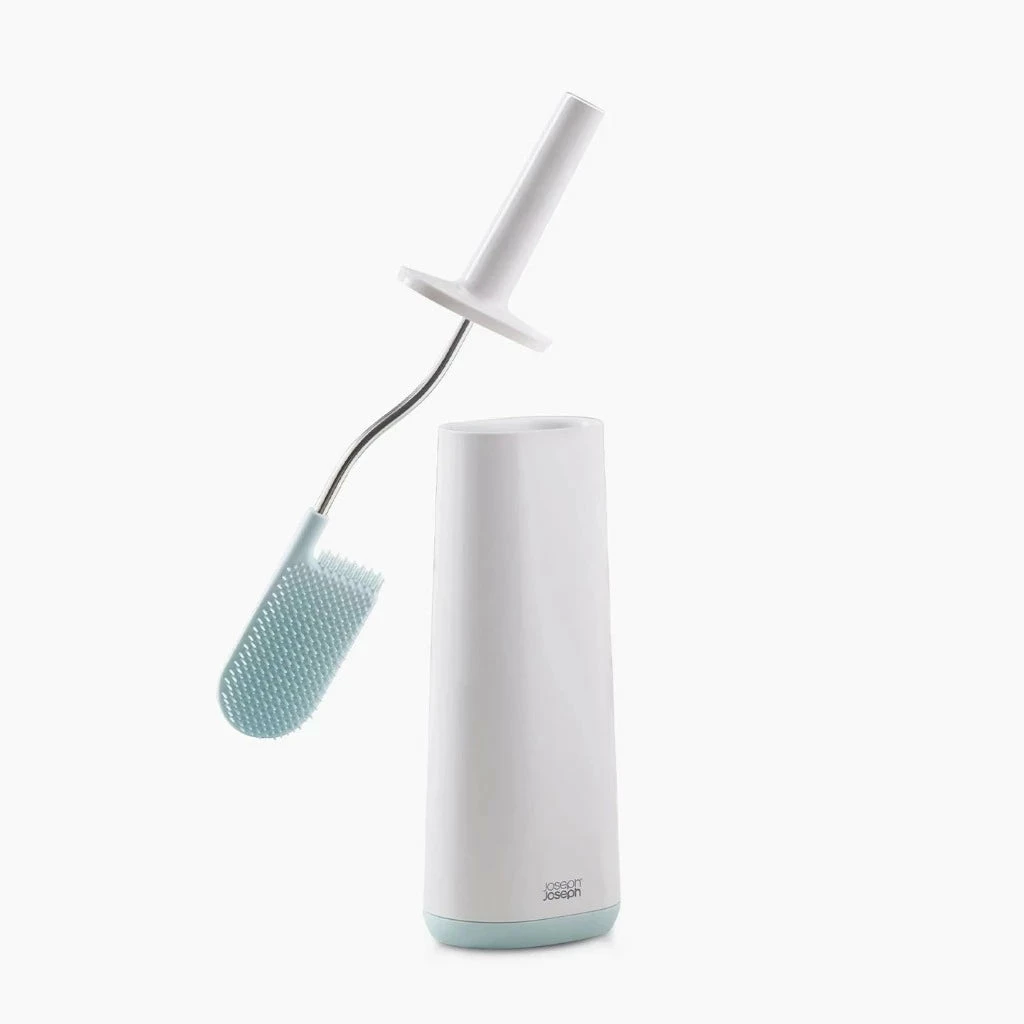 The Joseph Joseph revolutionary Flex™ toilet brush has a unique D-shaped, flexible head with wide bristles to effectively and hygienically clean the toilet. Flexible, D-shaped head reaches all areas, even under the rim Anti-drip: less dripping between cleaning and storing Anti-clog design: wide bristle spacing ensures dirt rinses off easily Durable bristles Comes with a slimline holder for neat storage Dimensions: H43.1 x W12.3 x D8.7cm (H17 x W5 x D3½ inches)