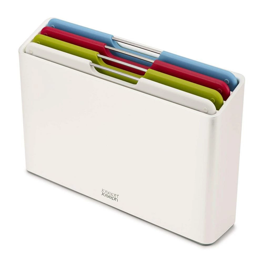 A set comprising of four colour-coded chopping boards. Presented in a slimline case to keep your chopping boards organised.