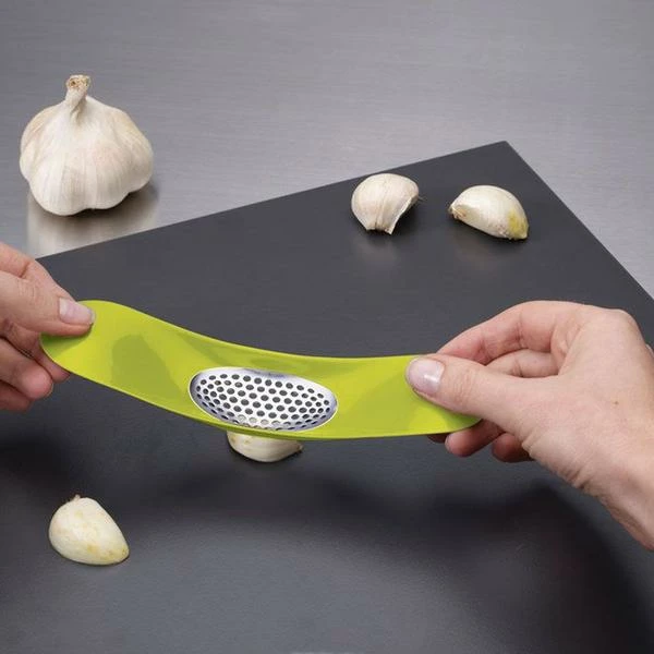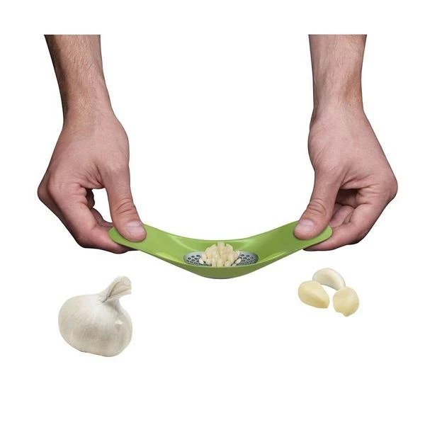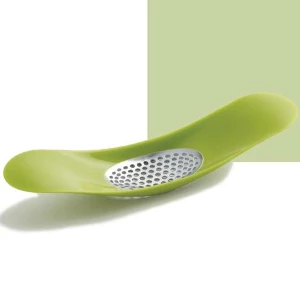 By using downward pressure and a ‘rocking’ motion, this stylish tool crushes garlic cloves quickly and easily by forcing the pieces up through its mesh holes, leaving your hands free of garlic odour. Simply use the Rocker™ to crush your garlic, then spoon or scrape it from the curved press with ease to add to your cooking. Additional cloves can also be crushed at this stage before emptying. Joseph Joseph garlic Rocker™ is easy to clean under running water but is also dishwasher safe. Wave bye to those potent garlic hands!