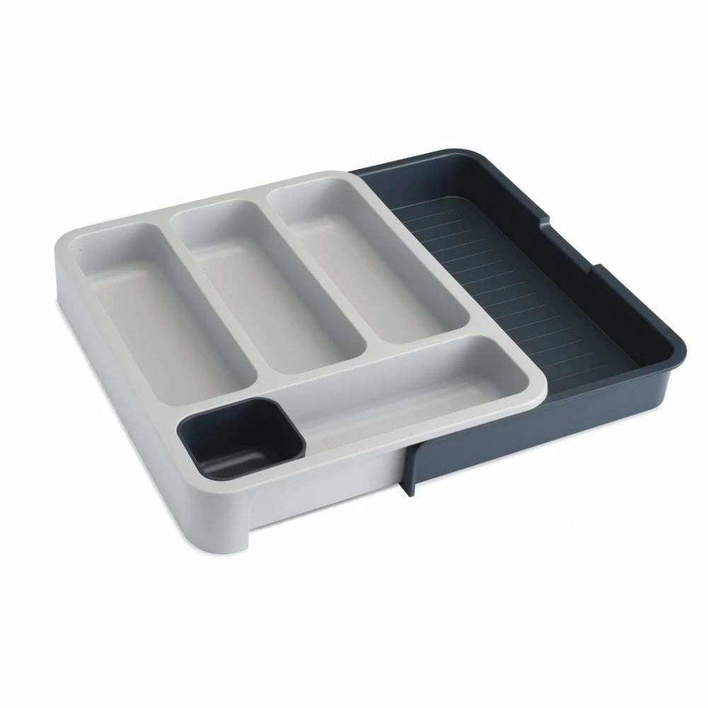 This versatile cutlery tray fits a range of drawer sizes as it features four deep sided compartments for cutlery plus an adjustable tray that can be expanded for larger tools and utensils. In addition there is a useful moveable dish for miscellaneous bits and pieces. A useful addition to your kitchen.