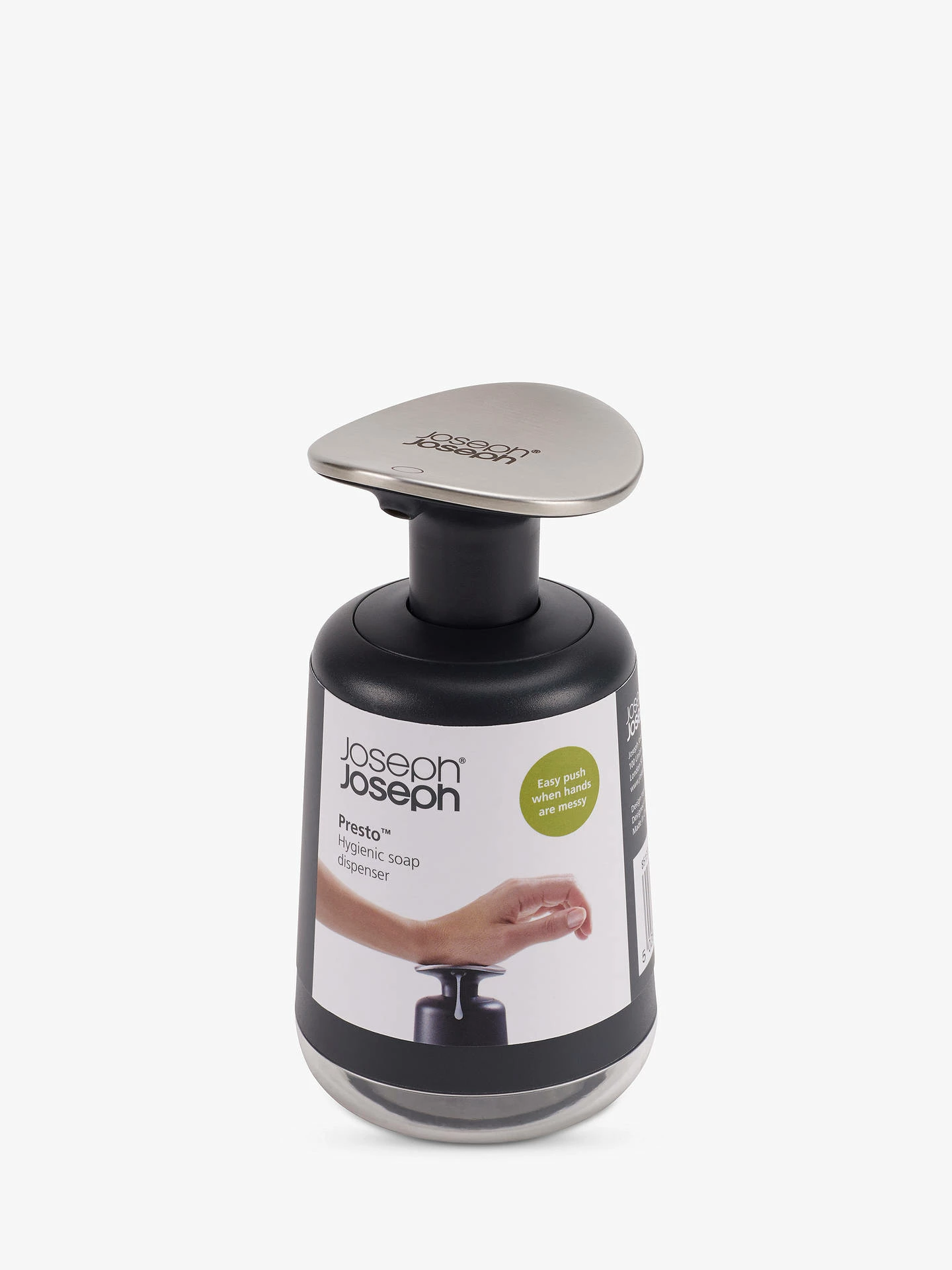 The Presto soap pump from Joseph JosephJoseph Joseph is designed with an oversized press so that you can use your wrist to dispense the soap – saving you from getting the dispenser dirty. Super hygienic too. This clever pump also features a transparent window at it’s base so that you can see when it needs filling up.