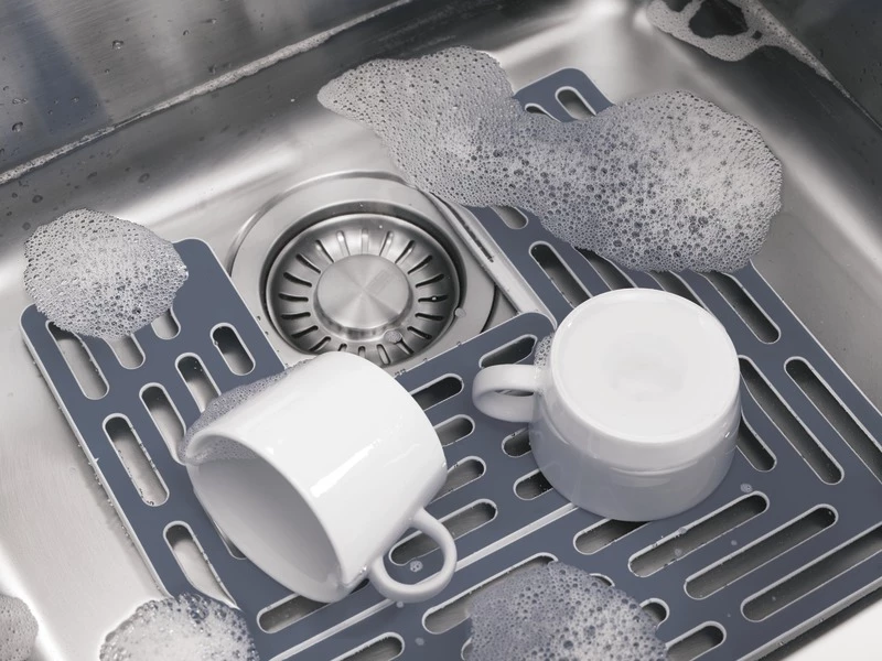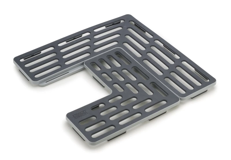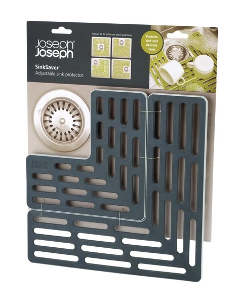Protect delicate glassware and crockery with Sink Saver™, a clever two-piece mat that can be placed in the sink in a number of different positions to fit around the plughole. This useful sink mat from Joseph Joseph comprises two grid-like sections that lock neatly together to create a secure base with a soft rubber surface that helps cushion your tableware, glasses and cups when washing to stop them being chipped, scratched or broken. It also has raised non-slip feet that allow water to drain away and air to circulate freely.