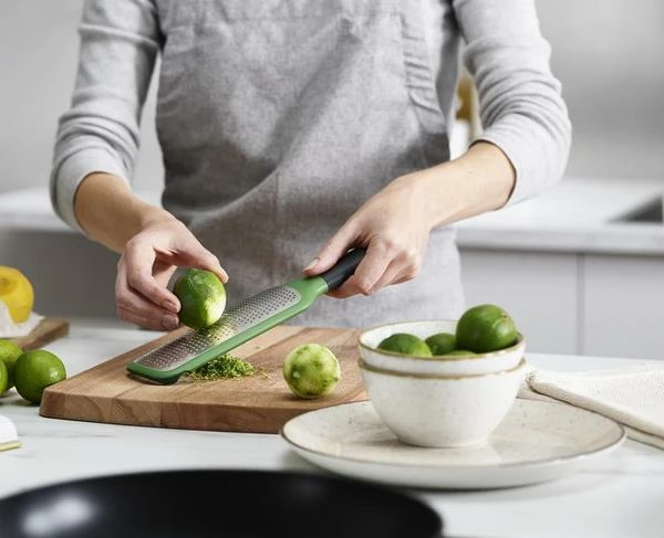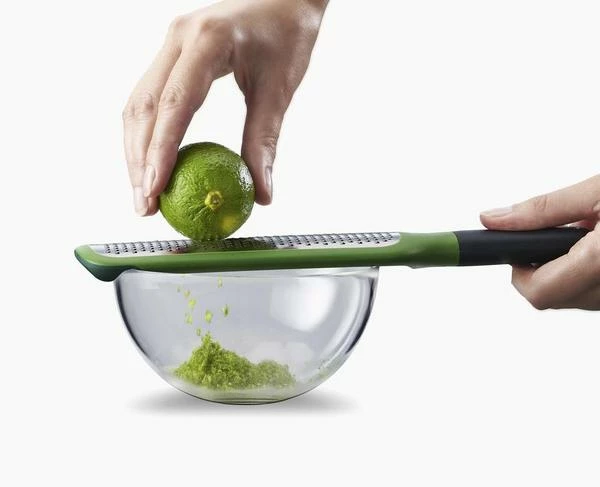 This fine grater is ideal for grating hard cheeses or zesting citrus fruits and has handy notches on the underside that can be hooked onto the edge of a bowl. Hooks onto bowl edge for easy collection of grated food Coarse stainless-steel blade Easy-grip handle Non-slip tip Ideal for grating hard cheeses or zesting citrus fruits