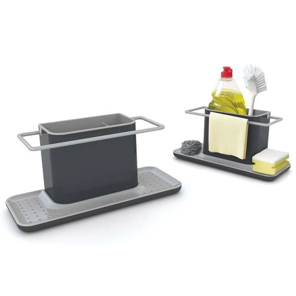 Organise all of your washing-up essentials with this stylish but highly practical sink tidy. Organised storage for your sink area Main compartment for storing large washing up liquid bottle and brush Wide rail for hanging damp dishcloths and double sponge plate for storing sponges and scourers Concealed reservoir collects drained water Easily dismantled for easy cleaning Dishwasher safe BPA free Dimensions: H15 x W30.5 x D13cm (H6 x W12 x D5¼ inches)