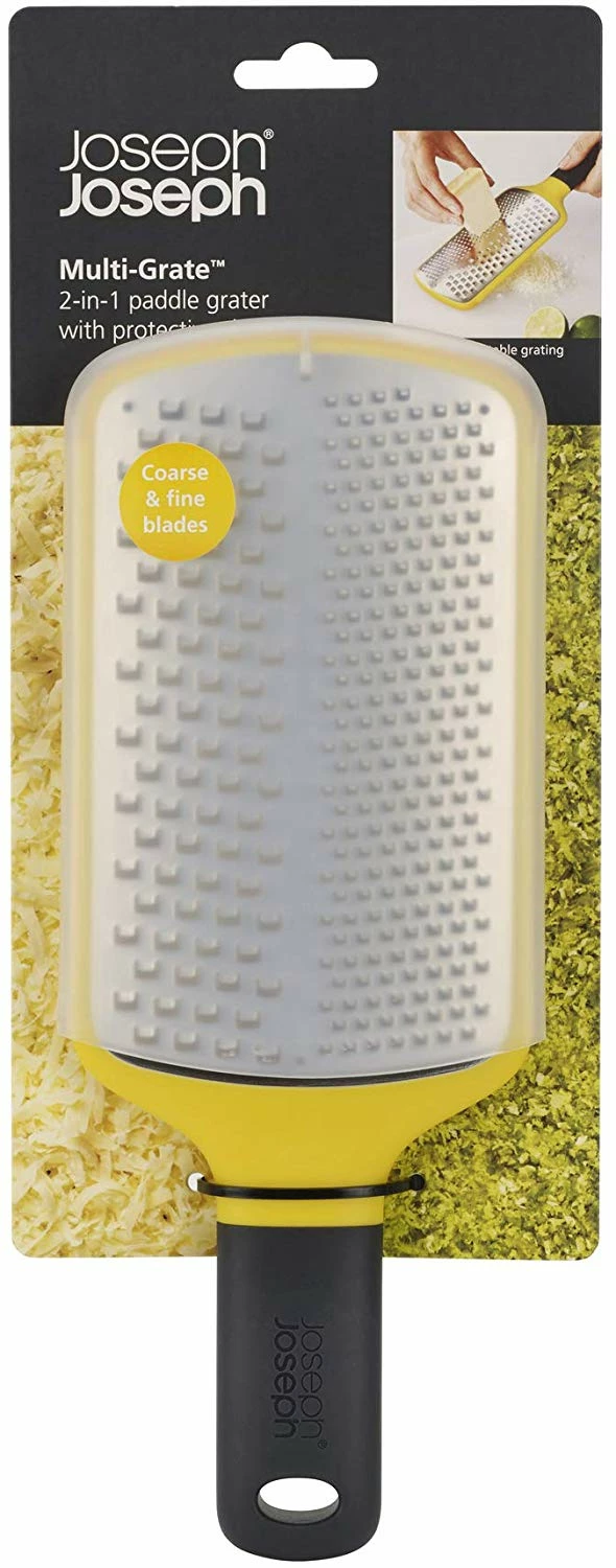 Featuring a coarse and fine grater in 1, Joseph Joseph’s Multi-Grate is the perfect space saving tool for any kitchen. The paddle design means it’s easy to grate directly over food and the non-slip surround means it’s ideal for resting on the work top too. Comes complete with a protective sheath. Dishwasher safe. Colour: Yellow.