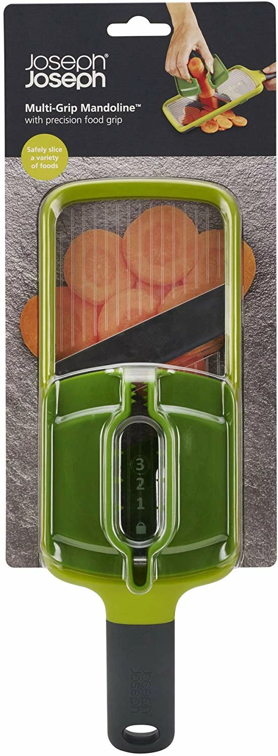 Just the tool for creating beautifully even slices of fruit and veg! The Multi-Grip Mandoline by Josepph Joseph features a grip for holding your fruit/veg and three options of slice thickness. This clever gadget will save your fingers. Dishwasher safe. Colour: Green.
