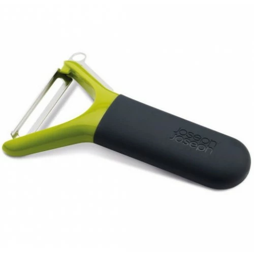 The Y-Peeler is a multi-function, general purpose peeler with a straight peeling blade made from high-quality stainless steel by Joseph Joseph. It has a Y-shaped ergonomic easy-grip handle, a tough scraping blade for removing vegetable skins and a potato-eye remover. Comes with a protective blade guard.