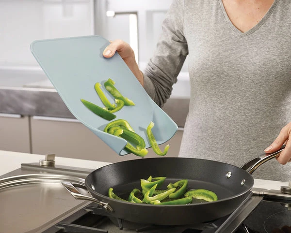 Joseph Joseph The three different sized chopping boards in this set all stand upright and nest together to take up less room in your kitchen. Boards fit neatly together for organised storage Easy-pour ends guide chopped food into a pan Knife friendly textured cutting surfaces All three boards can be stored upright on worktop Non-slip base