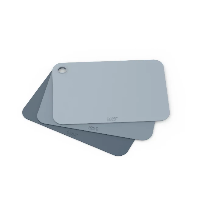 This colourful set of chopping mats are perfect for preparing and chopping food, plus they conveniently snap together for easy storage. Each of the three chopping mats of Pop™ has a double-sided, knife-friendly cutting surface and is clearly colour-coded, making it easier to keep specific boards for specific types of food to help reduce cross-contamination. Their flexibility means that they can be bent to direct chopped food into a pan or food waste into a bin. The ‘hole’ detail is designed to allow all the boards to be joined by simply pushing together, and it also provides the perfect hanging point.