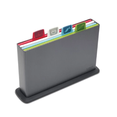 This practical set of cutting boards from Joseph Joseph is part of their award winning Index collection. With its simple but effective colour coded system and easy grip metal index tabs that identify which food type, the boards should be used for the Index system is designed to reduce the risk of cross contamination. Stylishly stored in a smart metal-effect case with a non-slip base, this contemporary set makes a stylish addition to any kitchen surface and also makes an ideal gift for the foodie in your life.
