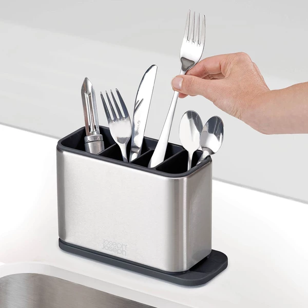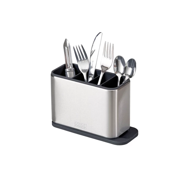 Keep your kitchen sink looking sleek and stylish with this stainless steel cutlery drainer by Joseph Joseph. It features a sloped base and an integrated spout to allow drained water to drain freely. The drainer can also be dismantled for easy cleaning. Wash & dry by hand BPA free Dimensions: H13.5 x W20.2 x D8.4cm (H5½ x W8 x D3½ inches)