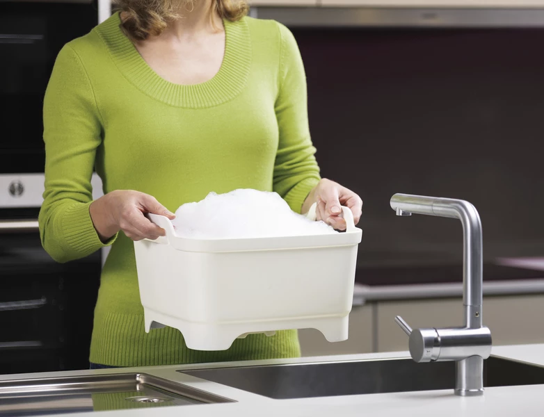 This stylish dishwashing bowl also has large carry handles so you can transport it easily- perfect for cleaning other areas of the house or for washing dishes anywhere. Its steep sides also help keep water and soapsuds safely inside.