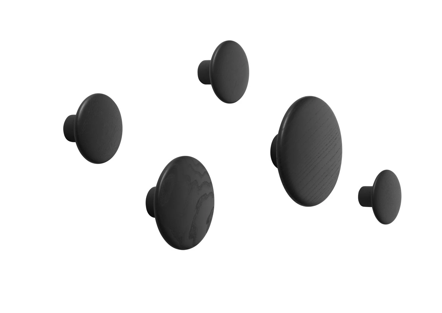 The DOTS by Muuto are versatile wooden hooks in a functional design. Taking a playful approach to the conventional coat hook, DOTS can be arranged in unlimited numbers and combinations in a variety of sizes (or colours).