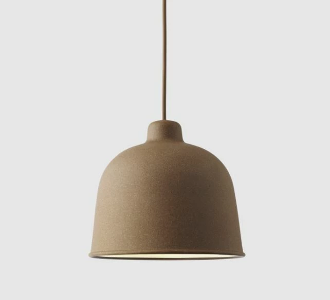 The traditional pendant silhouette receives a poetic reinterpretation with the Grain Lamp. Simple and elegant, the lamp has small grains of fiber in its surface, creating a subtle texture and change in the diffusion of light. The pendant includes an LED lightbulb that lasts for up to 10,000 hours and provides a warm, natural glow.