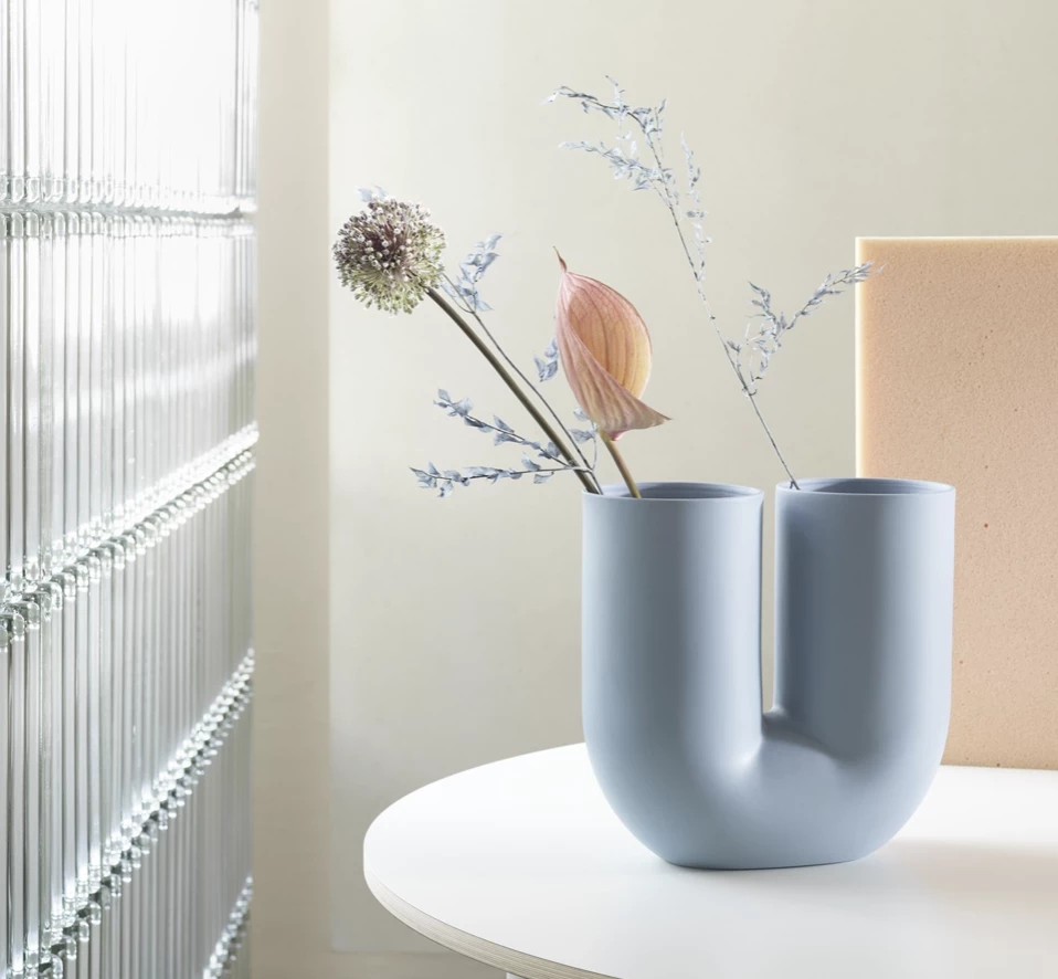 The Kink Vase from Muuto brings a contemporary form to the archetypal flower vase through a combination of traditional craftsmanship and playful design language.