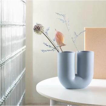 The Kink Vase brings a contemporary form to the archetypal flower vase through a combination of traditional craftsmanship and playful design language. With its double opening, the Kink Vase adds a sculptural sentiment to the room, even when not in use. The design is made in porcelain that has been glazed on the inside for a refined touch.