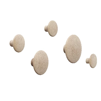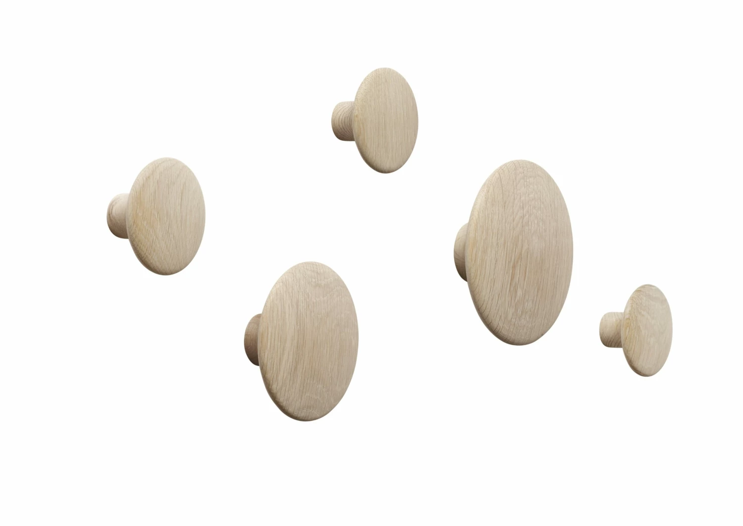 The DOTS by Muuto are versatile wooden hooks in a functional design. Taking a playful approach to the conventional coat hook, DOTS can be arranged in unlimited numbers and combinations in a variety of sizes (or colours).