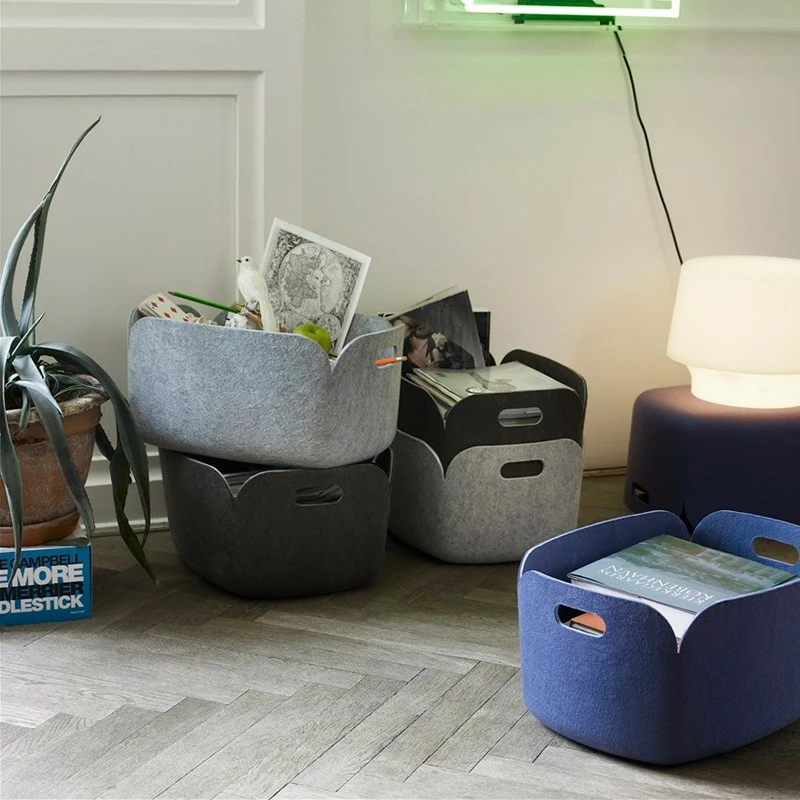 The Restore Basket is a useful accessory for storing blankets near the sofa, cosmetics or towels in the bathroom, storing umbrellas at the entrance of the house or for storing pajamas and slippers in the bedroom.