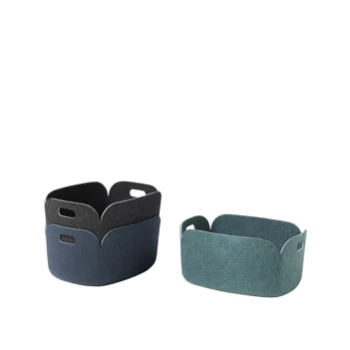 The Restore Basket brings a new perspective to modern storage, made using fibers from recycled plastic bottles. Available in multiple colors, the design can be used to store throws, clothing, toys and other objects.