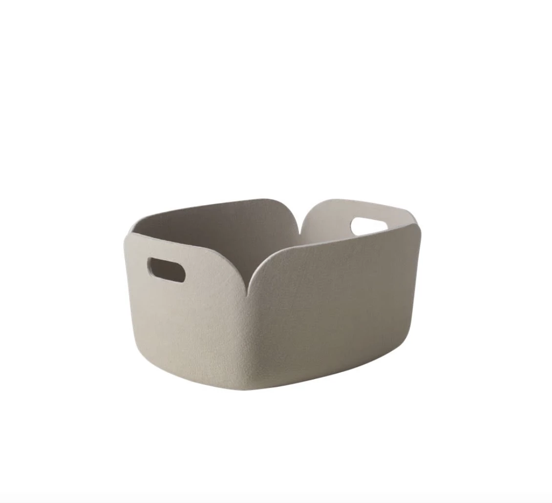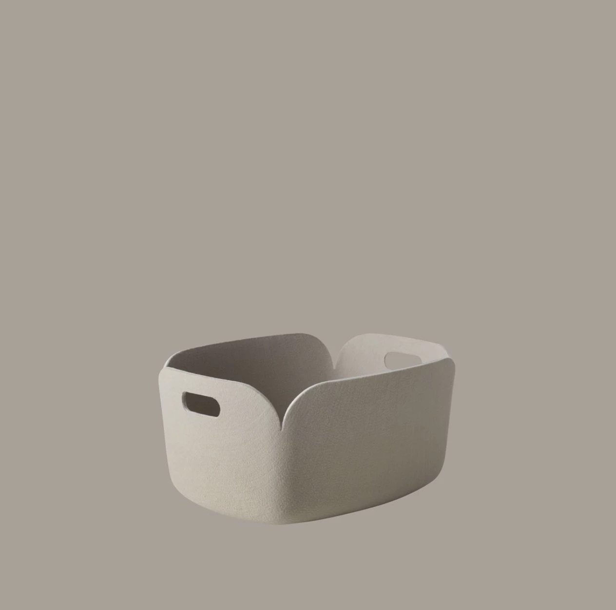 Made from a felt made of recycled plastic bottle fibers, the Restore Round Basket from Muuto is a functional and versatile storage unit that can be used for almost any object from laundry to blankets to children’s toysThe Restore Basket from Muuto is a design from Mika Tolvanen.