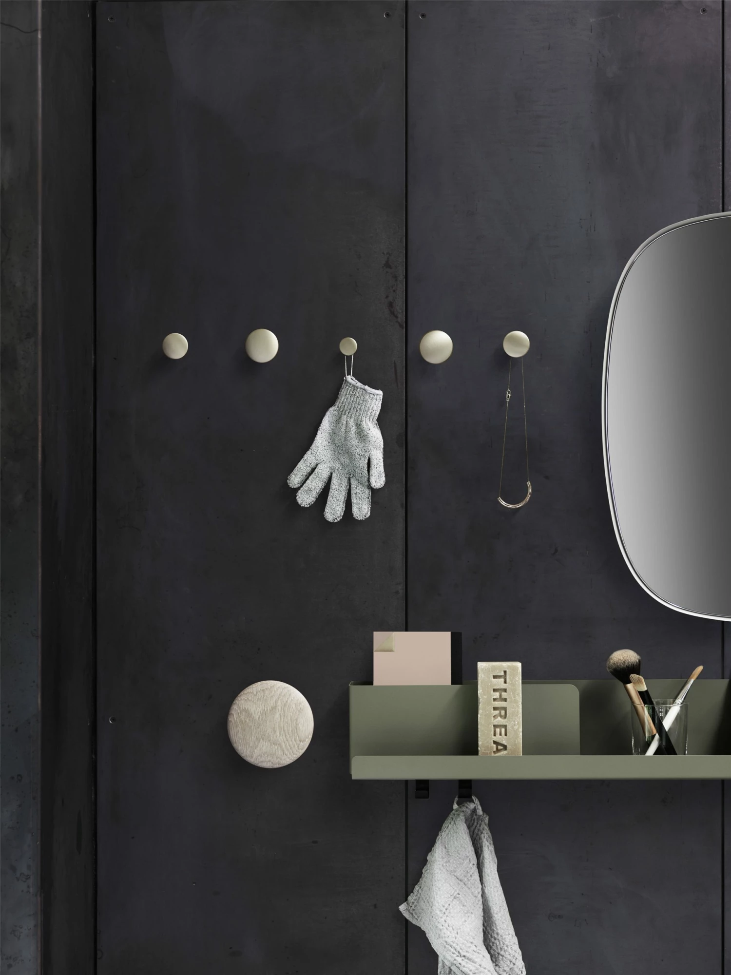 Taking a playful approach to the conventional coat hook, the Dots Metal bring a contemporary and industrial touch to any hallway, bedroom or kitchen as well as hospitality and workplace projects. Combine the design across various colors and sizes along with the Dots Wood and Dots Ceramic for a unique expression.