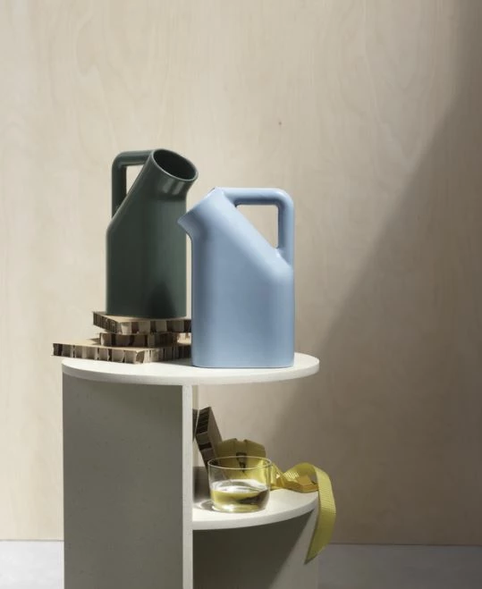 The Tub Jug is an industrial carafe with a contemporary expression, echoed through its angled handle and wide opening that bring both function and character to the design. The design is made in glazed ceramics.