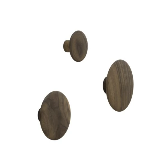 The DOTS by Muuto are versatile wooden hooks in a functional design. Taking a playful approach to the conventional coat hook, DOTS can be arranged in unlimited numbers and combinations in a variety of sizes (or colours).